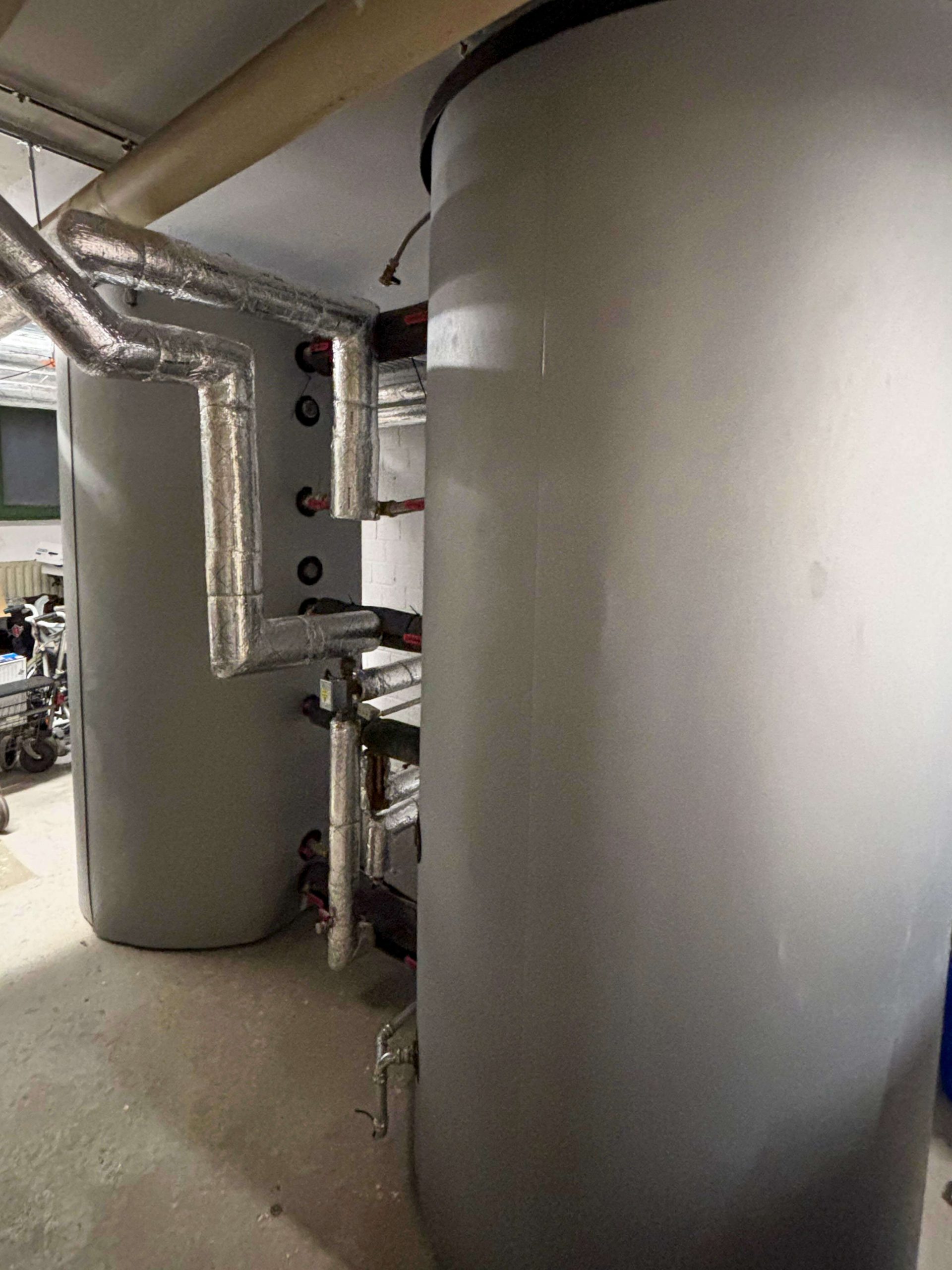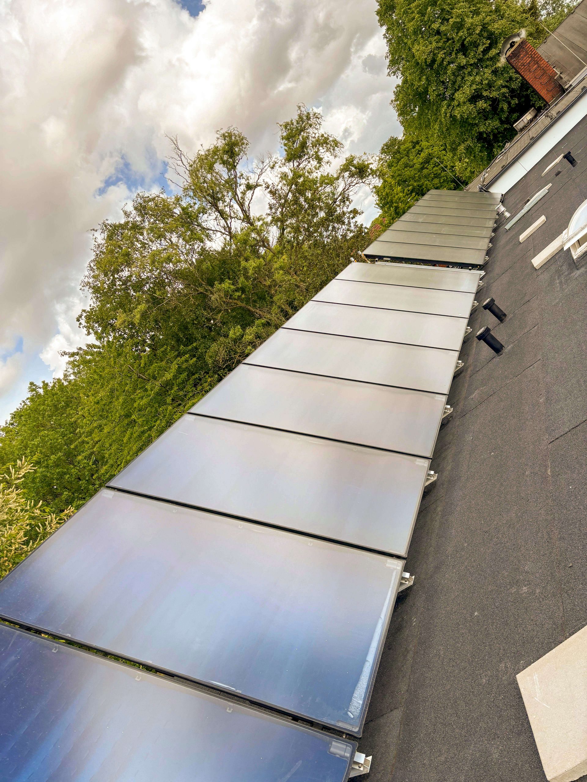 Für ein Altenheim in Hagen im Bremischen wurde eine moderne thermische Solaranlage zur Warmwasserbereitung installiert. Die Anlage sorgt dafür, dass Bewohnerinnen und Bewohner zuverlässig und energieeffizient mit Warmwasser versorgt werden. Zum Einsatz kamen leistungsstarke Bosch-Komponenten sowie zwei große Pufferspeicher mit jeweils 1.300 Litern Fassungsvermögen, die auch an Tagen mit geringer Sonneneinstrahlung für eine stabile Versorgung sorgen. Die Solarkollektoren auf dem Dach wandeln die Sonnenenergie effizient in Wärme um und tragen so aktiv zur Senkung der Energiekosten und zur Reduzierung von CO₂-Emissionen bei. Diese Lösung verbindet Nachhaltigkeit, Wirtschaftlichkeit und Versorgungssicherheit – optimal auf die Anforderungen einer Einrichtung wie einem Altenheim abgestimmt.
