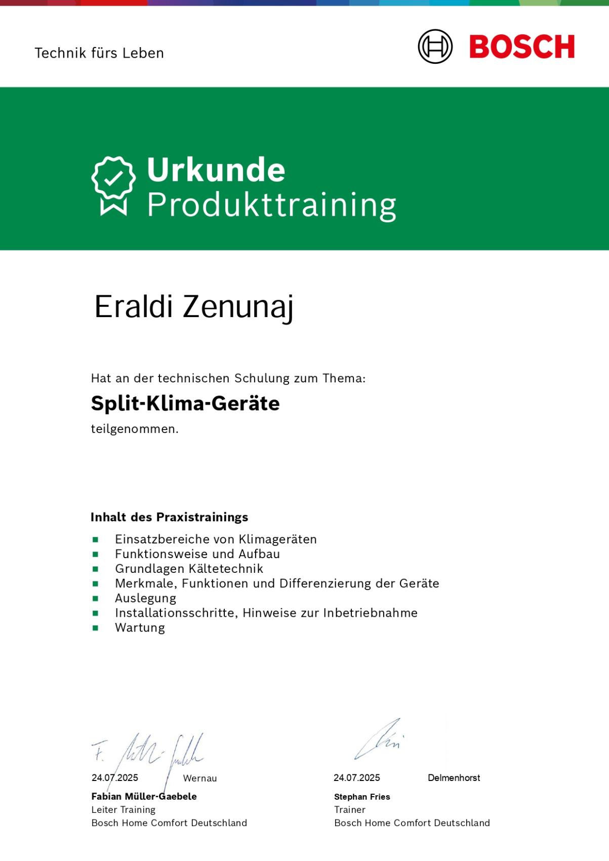 Das Zertifikat „Fachkraft für barrierefreies Bauen“ wurde über das Handwerkszentrum – Wohnen im Alter – der Handwerkskammer Düsseldorf erworben.